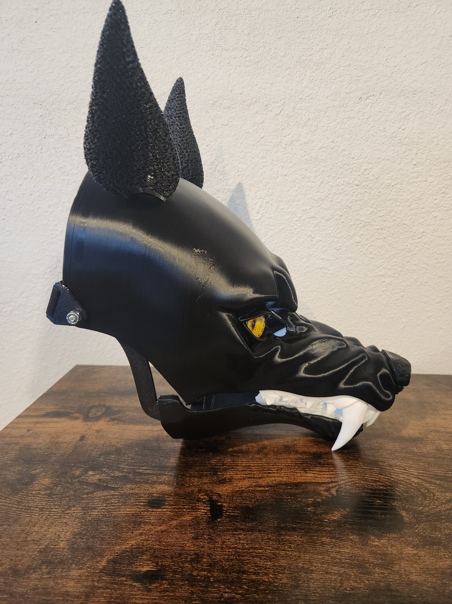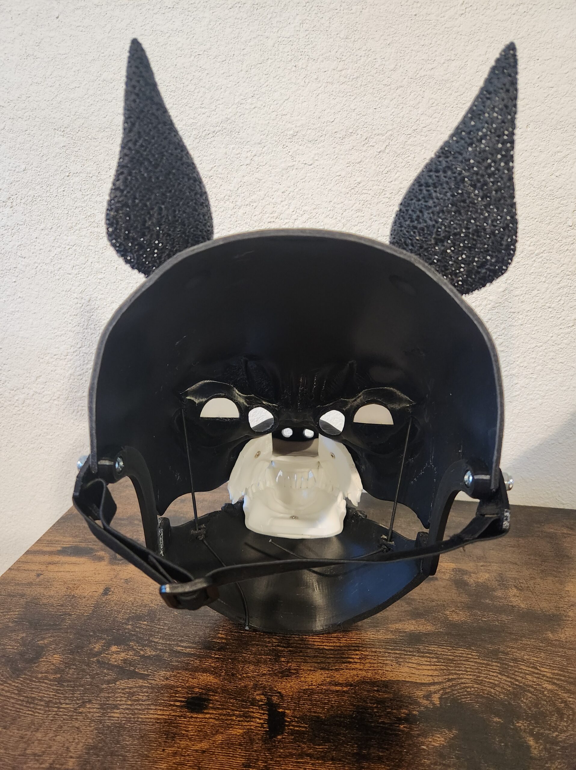 3D printed articulated werewolf DIY mask, based on my animatronic werewolf design (no animatronics in this mask!). Features an articulated jaw that moves with your own jaw.