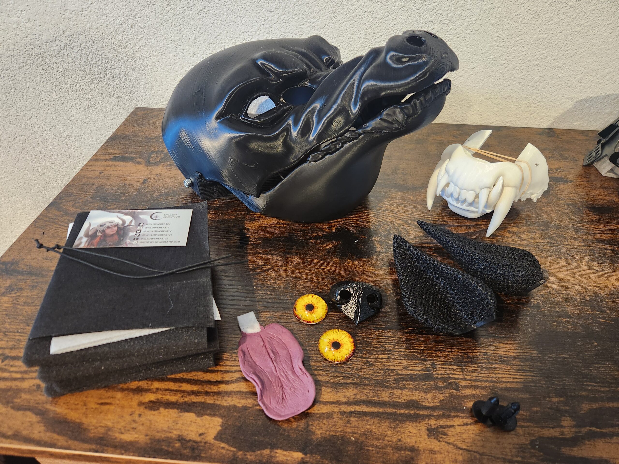 This kit is put together for you to add your own skin, fur, paint or whatever medium you choose to customize your werewolf mask without requiring or designing any additional pieces.